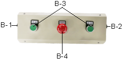 ③B-4為緊急按鈕,此按鈕無論在手動/自動模式下皆可作用,使增壓缸復位(軸心退回至上始點),順時方向旋轉可解除緊急停止狀態(tài),(緊急停止按鈕作用時,無法進行任何動作)。