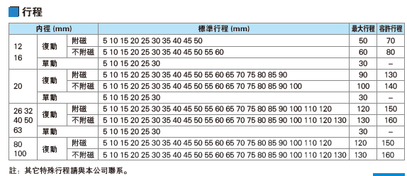 使用速度范圍mm/s:復(fù)動型:30~500 單動型:50~500