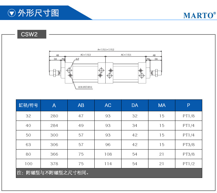2.為拉桿式氣缸,前后蓋與鋁管缸體用支柱連接,可靠性好。