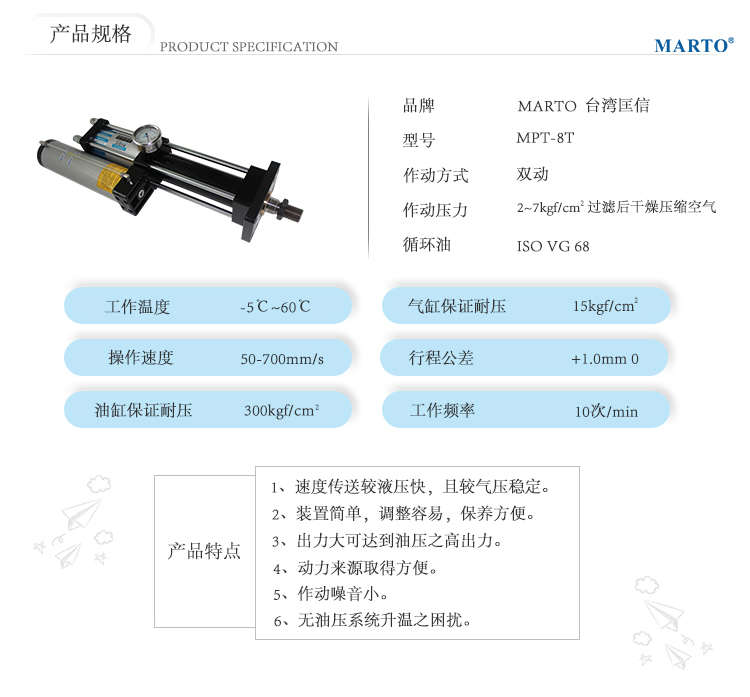 MPT-8T標準型氣液增壓缸產品特點