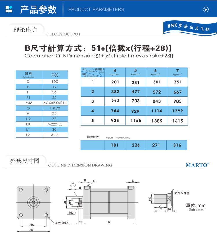 MHK-∮80多倍出力氣缸產(chǎn)品特點