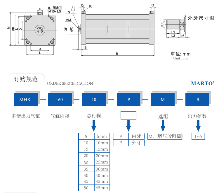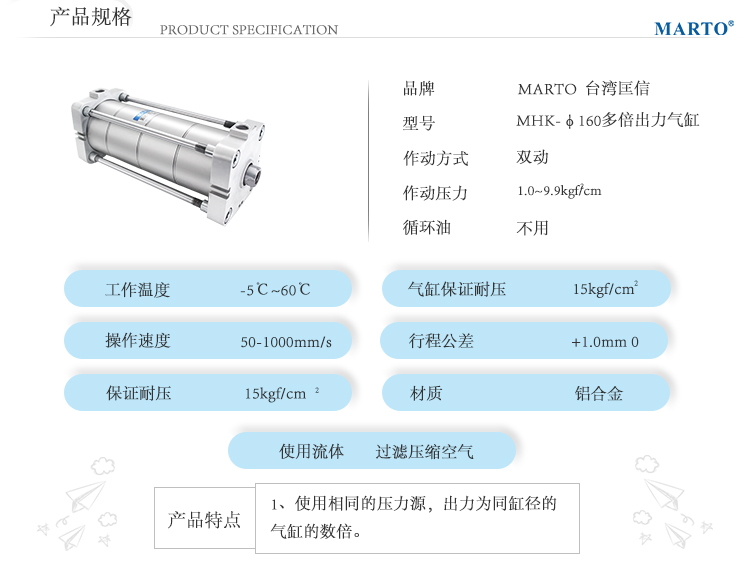 1.使用相同的壓力源,出力為同缸徑的氣缸的數倍。