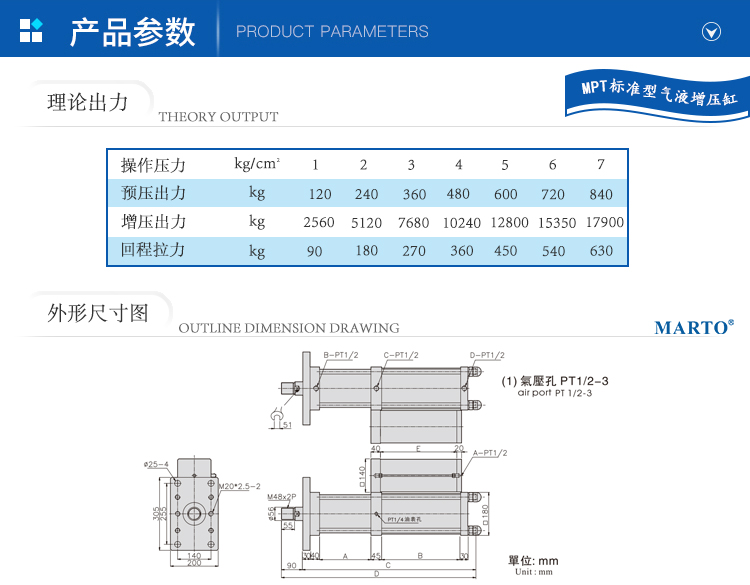 MPT標準型增壓缸選型