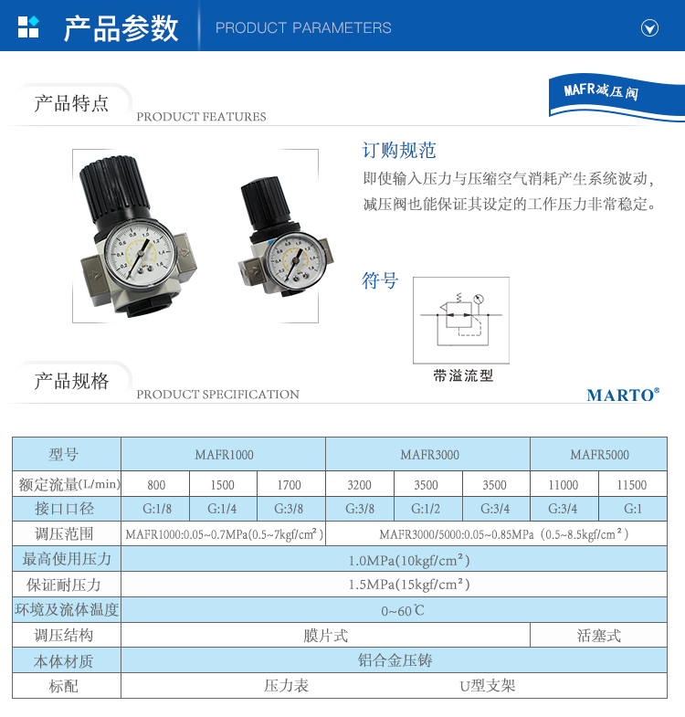 1.即使輸入壓力與壓縮縮空氣消耗產生系統波動,減壓閥也能保證其設定的工作壓力非常穩定。