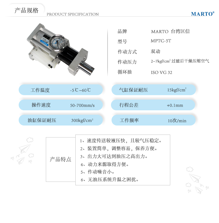 直壓式增壓缸----使用一般氣壓動力源,就能得到油缸的大出力,不需要液壓單元。