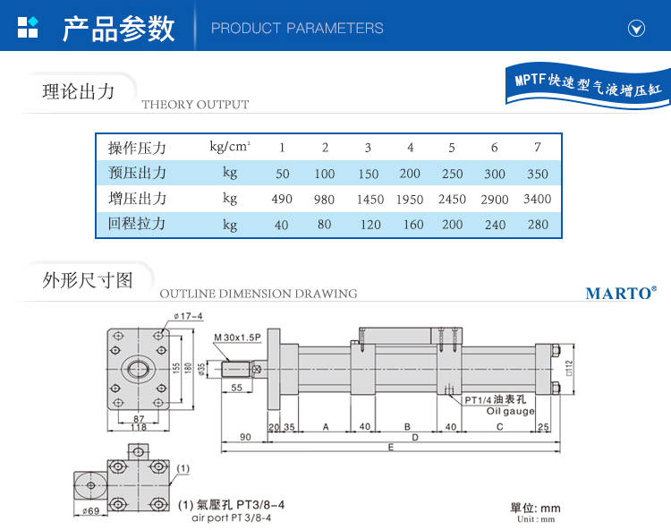 增壓缸選型 MPTF快速型增壓缸選型