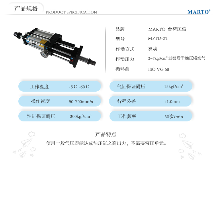 MPTD-3T行程可調(diào)型氣液增壓缸產(chǎn)品特點