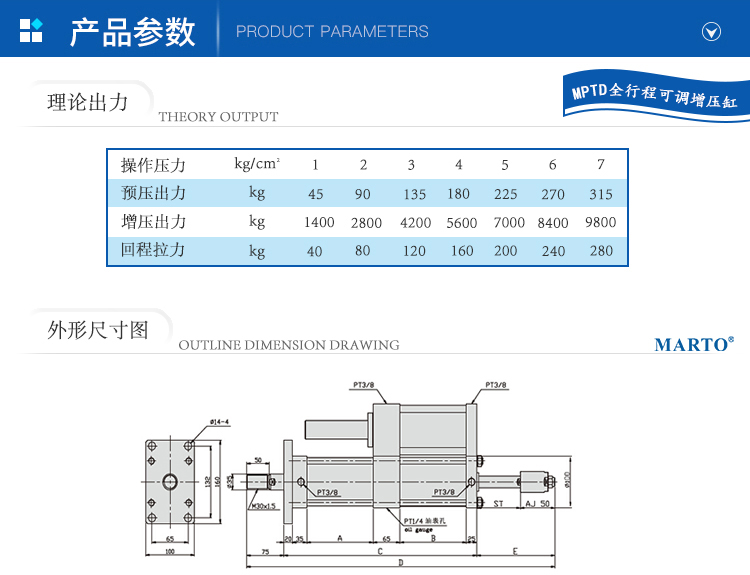 MPTD全程可調增壓缸選型