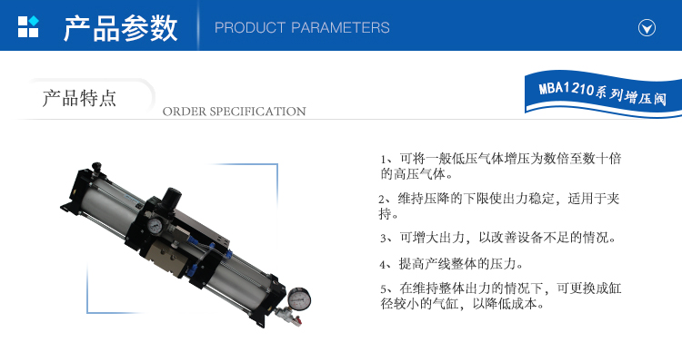 運用領域:氣壓式氣體增壓閥--主要適用于電子,汽車行業等。
