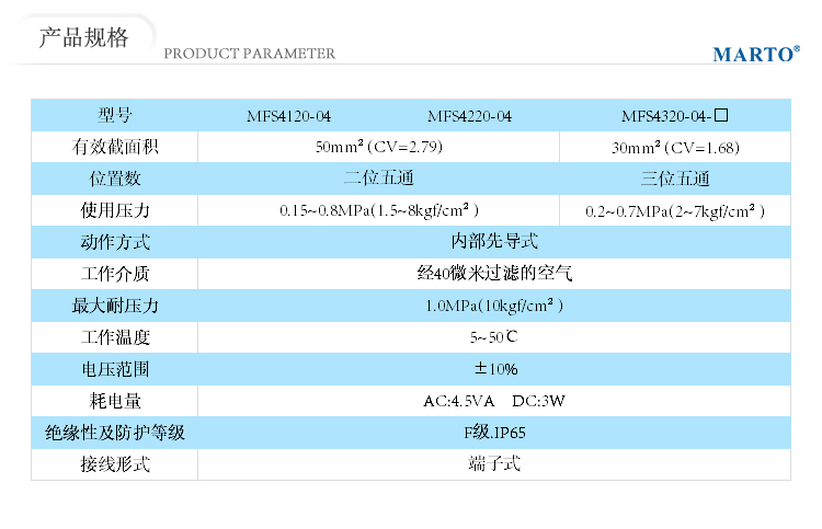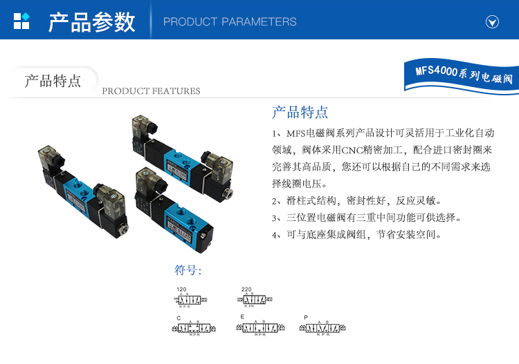 1.MFS電池閥系產品設計尺寸可靈活運用于工業自動化領域,閥體采用CNC精密加工,配合進口密封來完善其高品質,您還可以根據自己的不同需求來選擇線圈電壓。