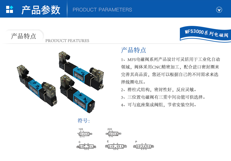 1.MFS電池閥系產品設計尺寸可靈活運用于工業自動化領域,閥體采用CNC精密加工,配合進口密封來完善其高品質,您還可以根據自己的不同需求來選擇線圈電壓。