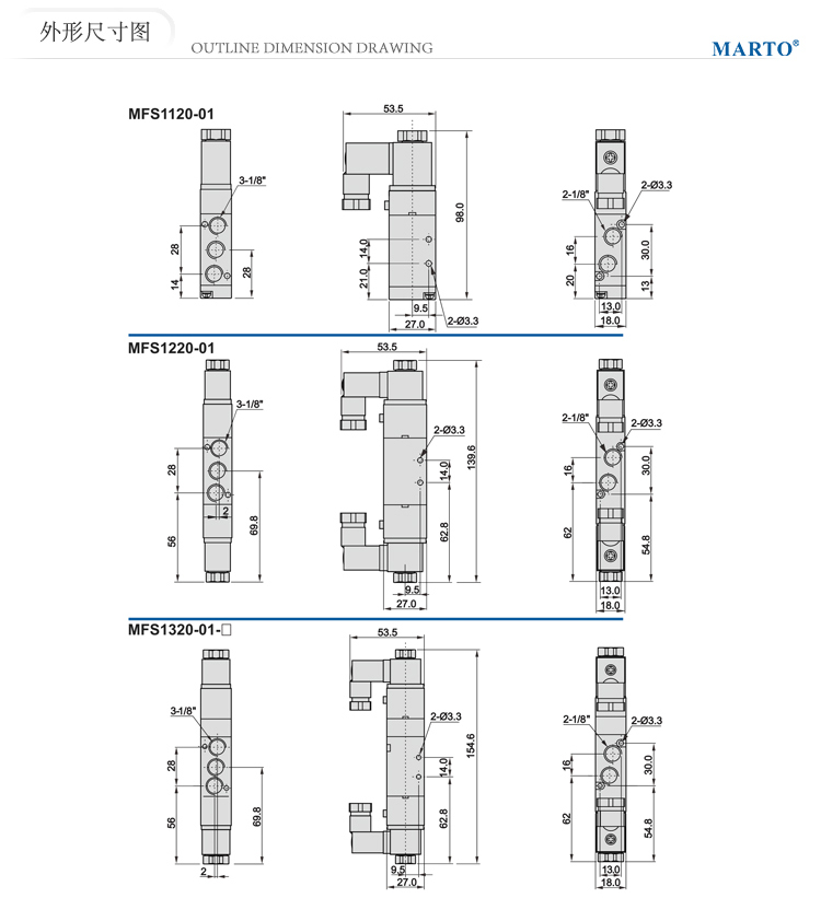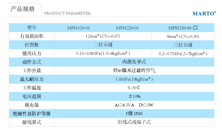 1.MFS電池閥系產品設計尺寸可靈活運用于工業自動化領域,閥體采用CNC精密加工,配合進口密封來完善其高品質,您還可以根據自己的不同需求來選擇線圈電壓。